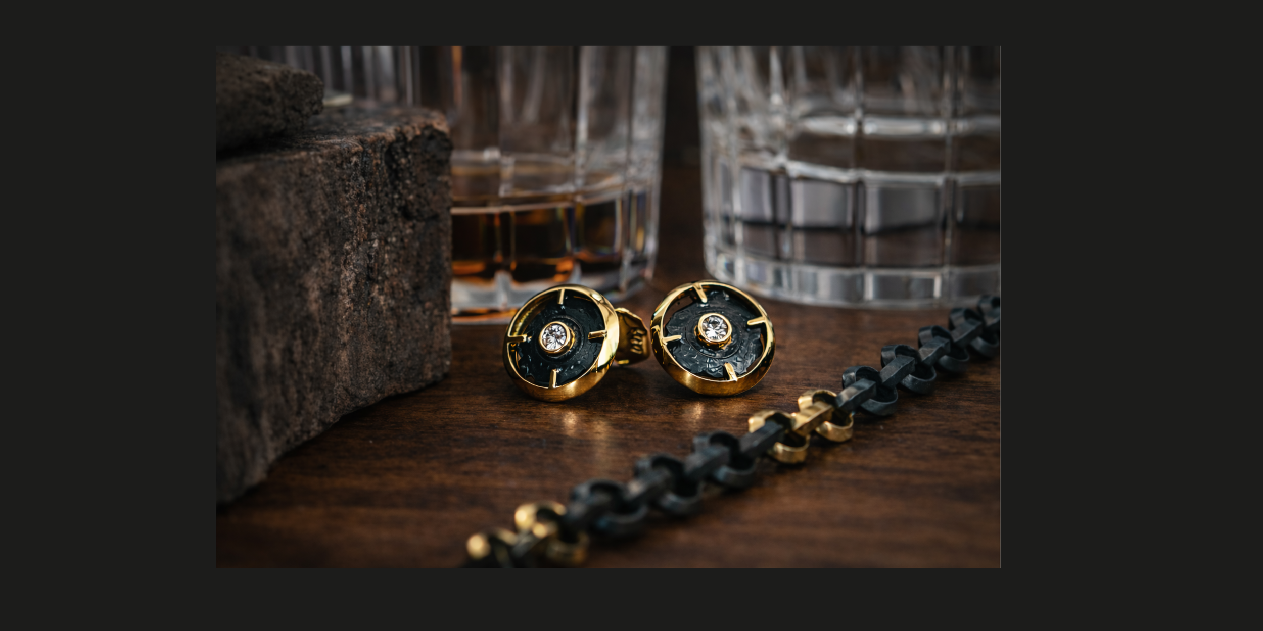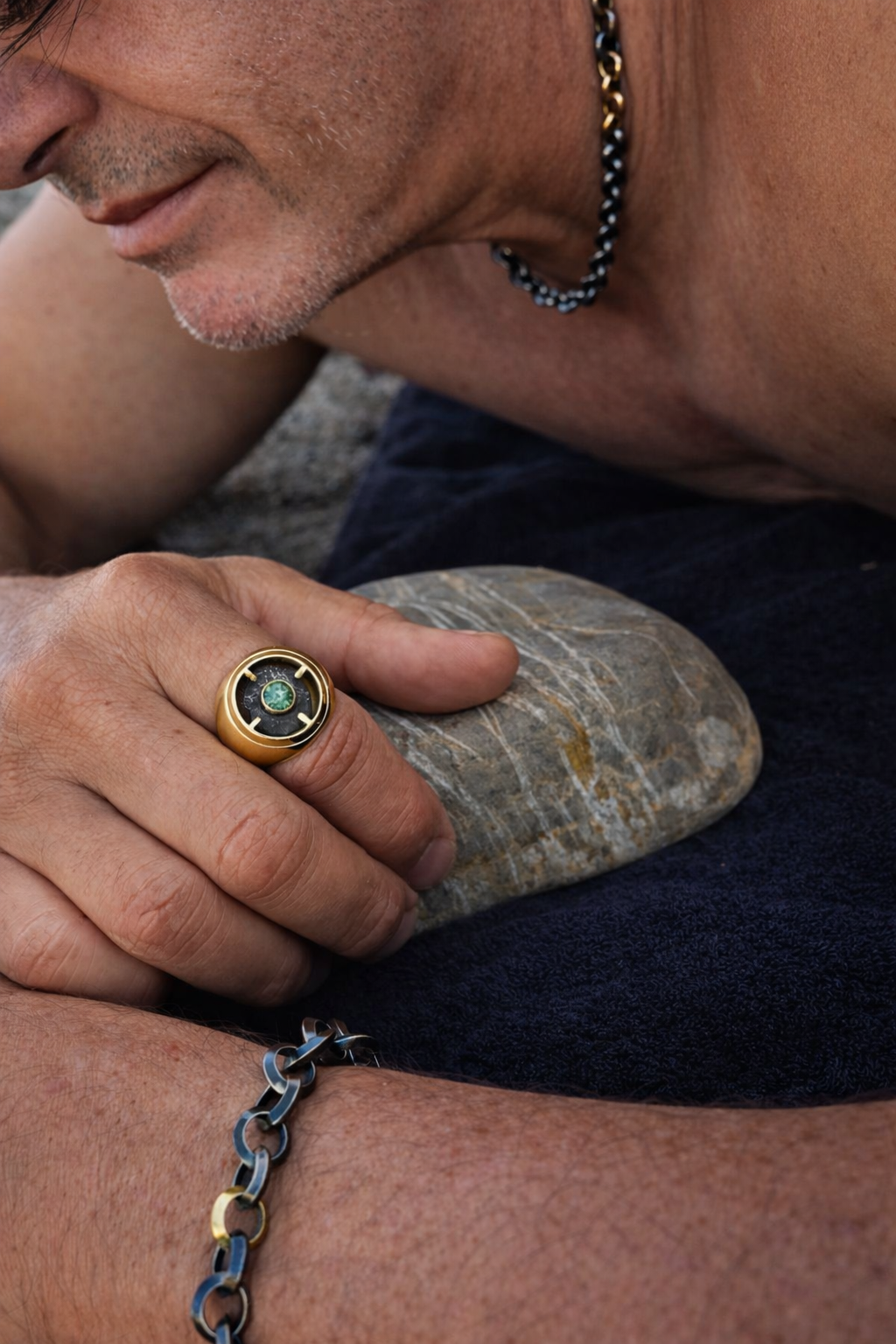 18k Yellow Gold Signet Ring with Oxidized Sterling Silver Bullet and White Diamond